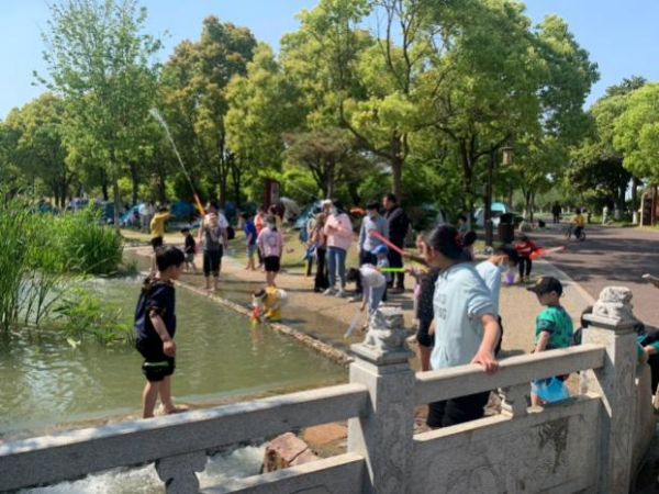 园内游人如织,有的在遛娃、戏水、拍照,有的在群艺馆观摩字画、参观非遗展览,有的在月亮广场欣赏惠民演出,还有人在星空下拉起幕布观看电影……优美宜人的自然景色与丰富多彩的文化景观为市民带来了绝佳的出游体验。