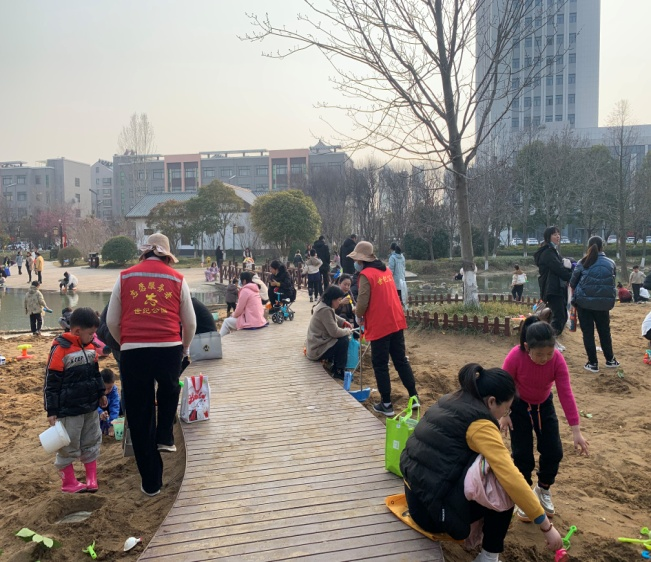 梅花怒放、玉兰含苞、杨柳吐绿、迎春绽放,无限春光引来游人如织,在公园里处处洋溢着欢声笑语,春日美景让游客流连忘返。儿童戏水区挖沙、戏水、露营、野餐等亲子游戏,处处呈现一派欢乐和睦的景象。